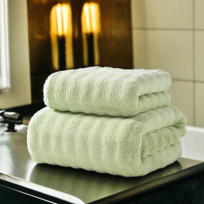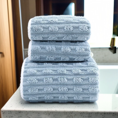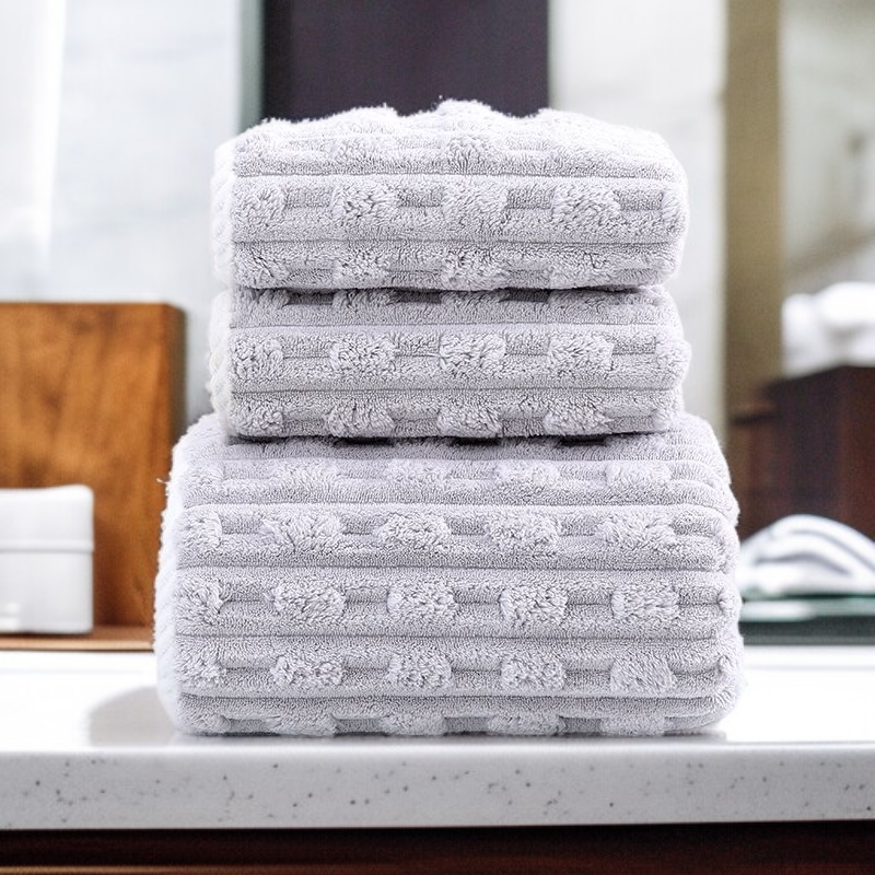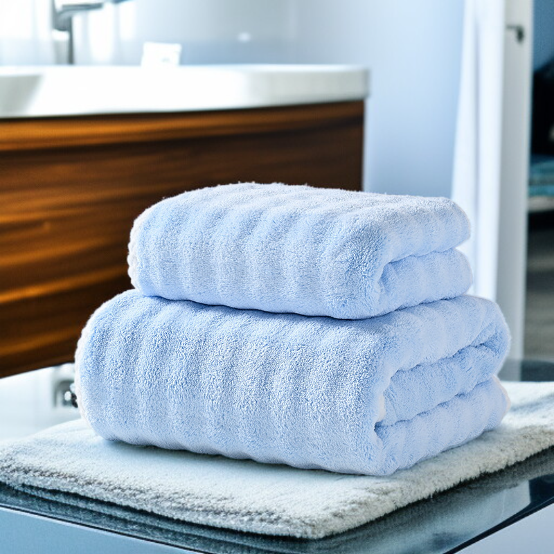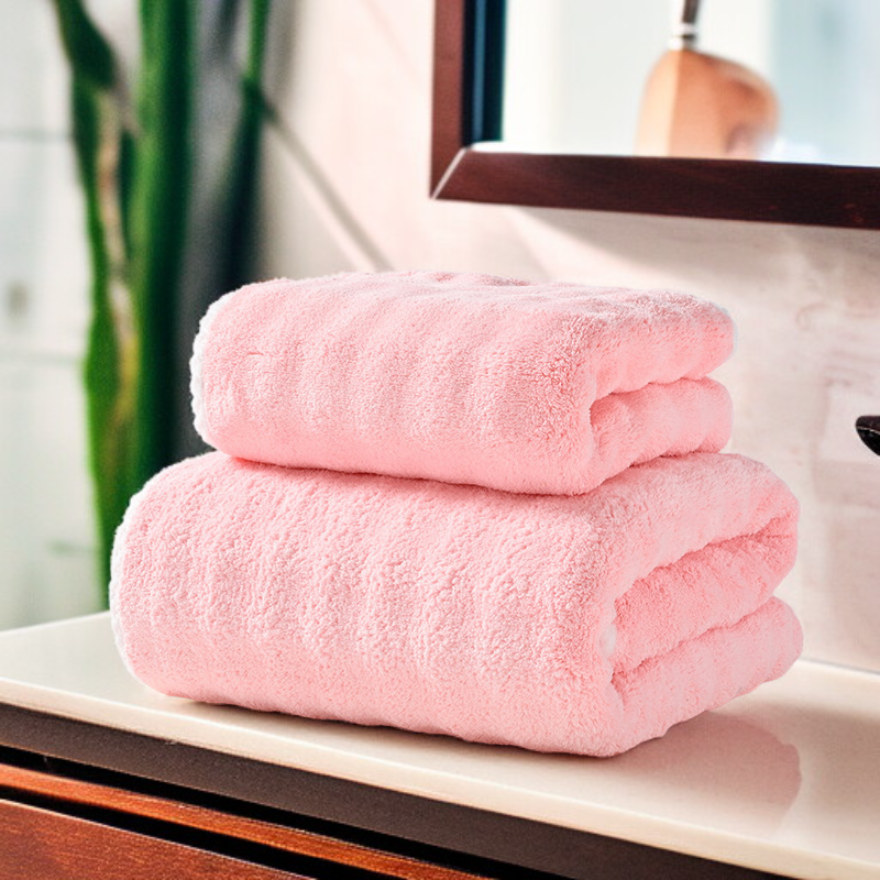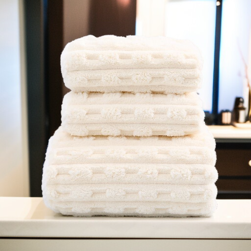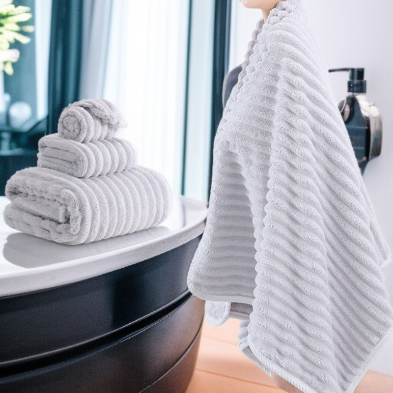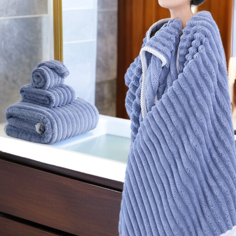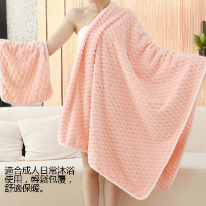 珊瑚絨雲朵格成人用浴巾浴帽套裝
