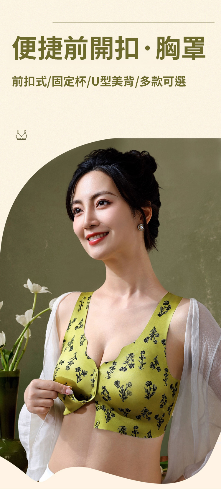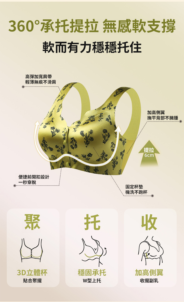 貴族風花卉流光緞面無痕內衣-一穿就‘挺’!防下垂!防外擴!不壓胸 穿著前開扣調整型內衣好身材!
