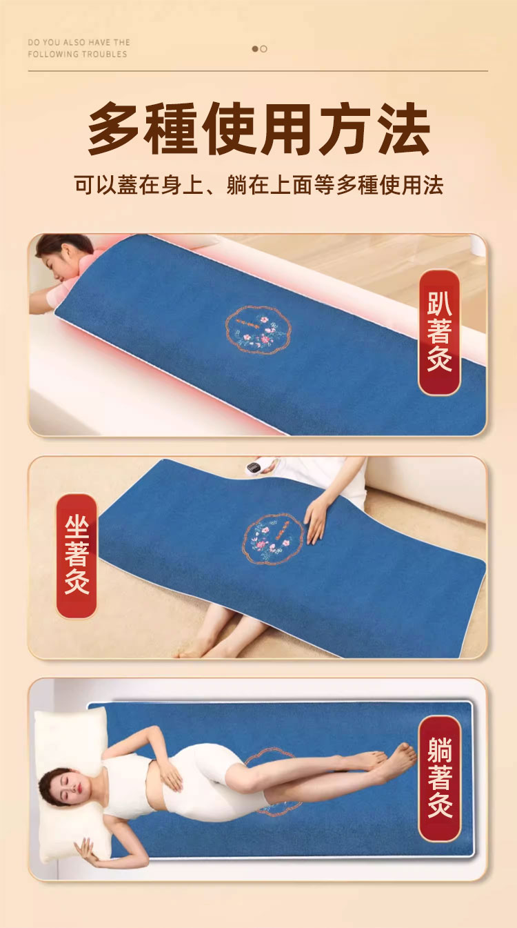 疏通全身經絡智能控溫電加熱艾絨毯-頸肩腰腿背都可用 陳艾絨填充 廠家直髮