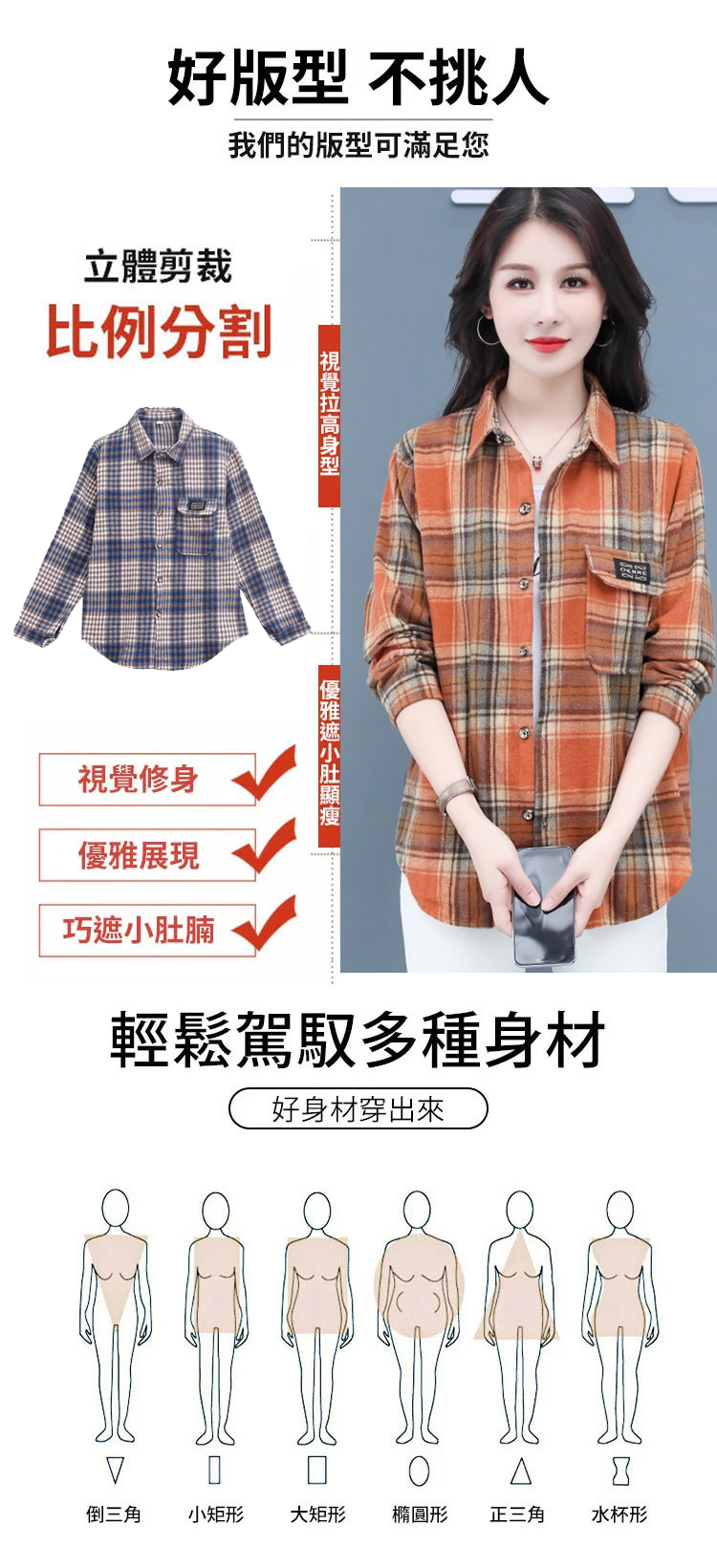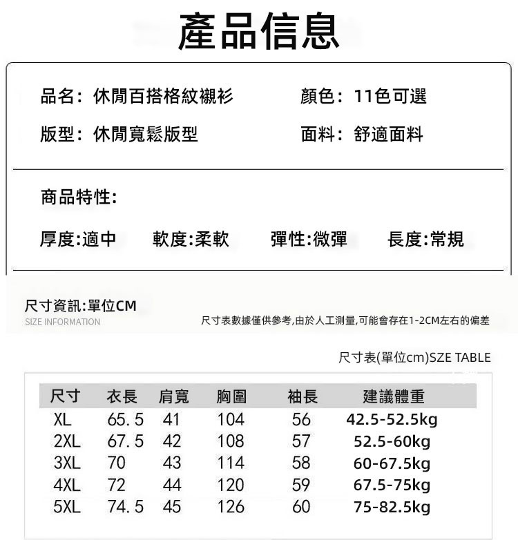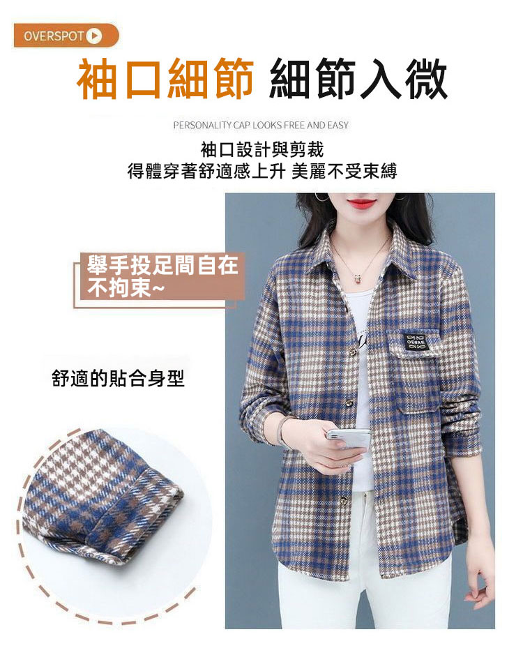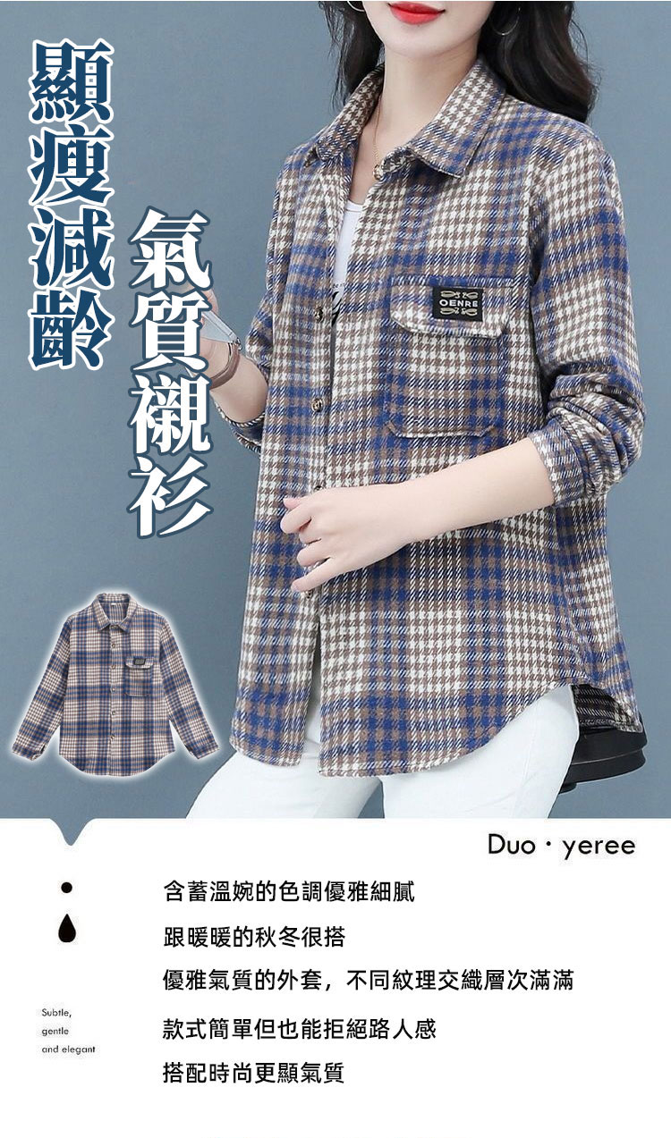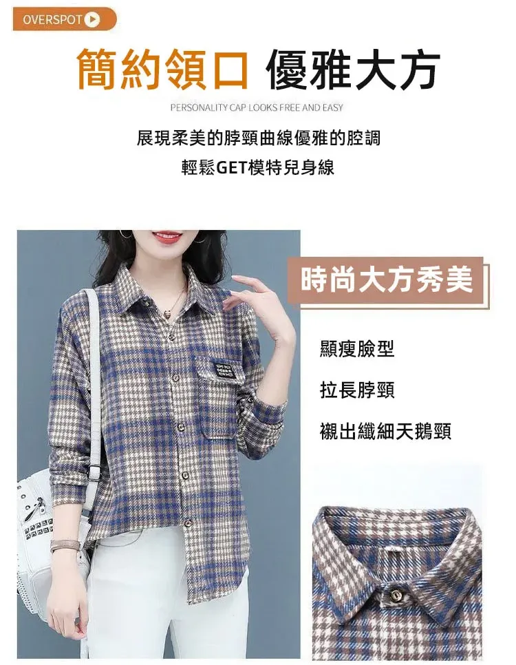 休閒百搭格紋襯衫-柔軟舒適、遮肉顯瘦、休閒百搭