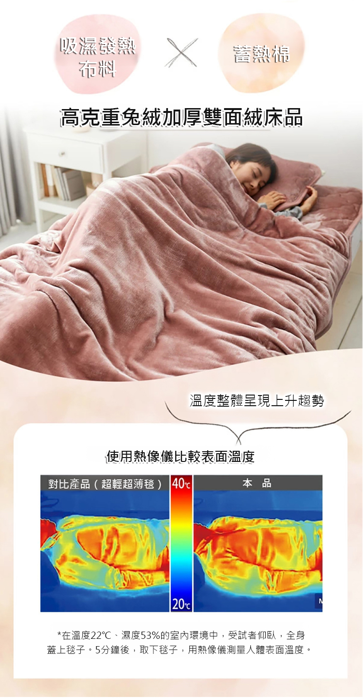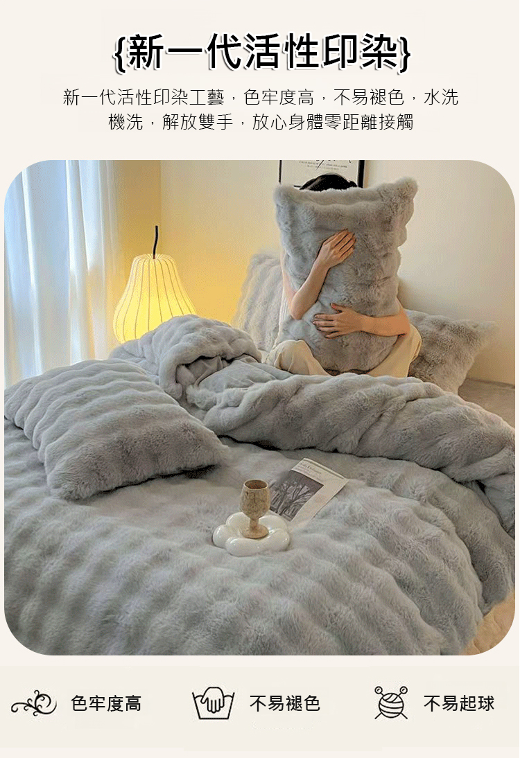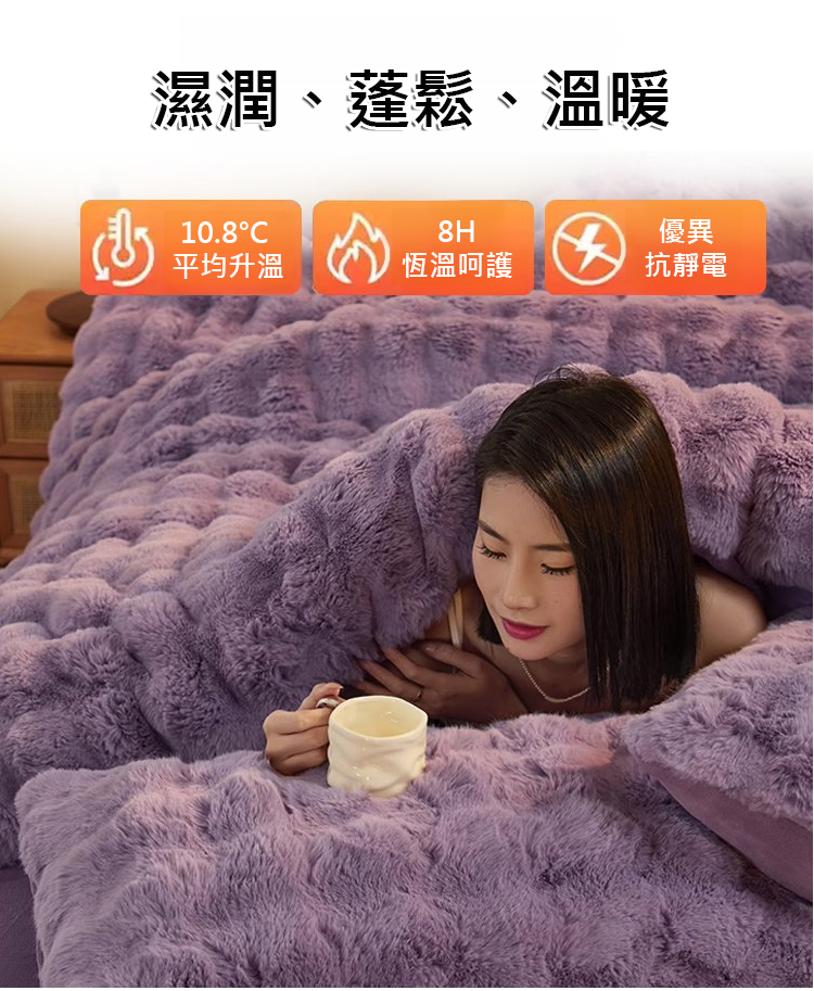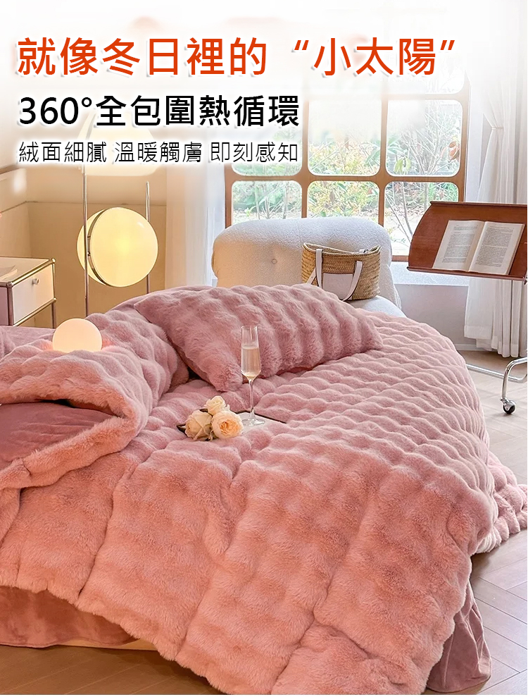 高克重兔絨加厚雙面絨床品-----即使在零下30 度的冬天,無需加熱也能在2秒內讓您倍感溫暖。