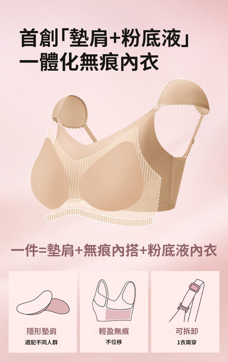 隱形墊肩粉底液直角肩內衣-隱形墊肩-一體無痕-顯瘦5kg